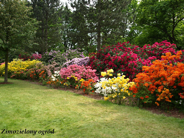 Jednak nie tylko tam znajdziemy te wspaniałe rośliny. Również w innych częściach ogrodu jest ich sporo. A prawdziwą kolekcję bardzo rzadkich odmian roślin wrzosowatych (nie tylko różaneczników) znajdziemy w innym miejscu ogrodu. Ale temu kącikowi poświęcę odddzielny post. Zafascynowały mnie tamtejsze pierisy i sośnice japońskie!