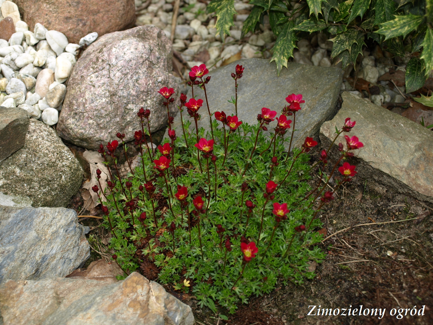 Od kilku dni w ogrodzie kwitną skalnice. Krzewinki, z uwagi na małą ilość słońca nie mają tu może idealnych warunków, ale posadzone w przepuszczalnej glebie przetrwały kapryśną zimę i teraz cieszą oczy swoimi kolorami.